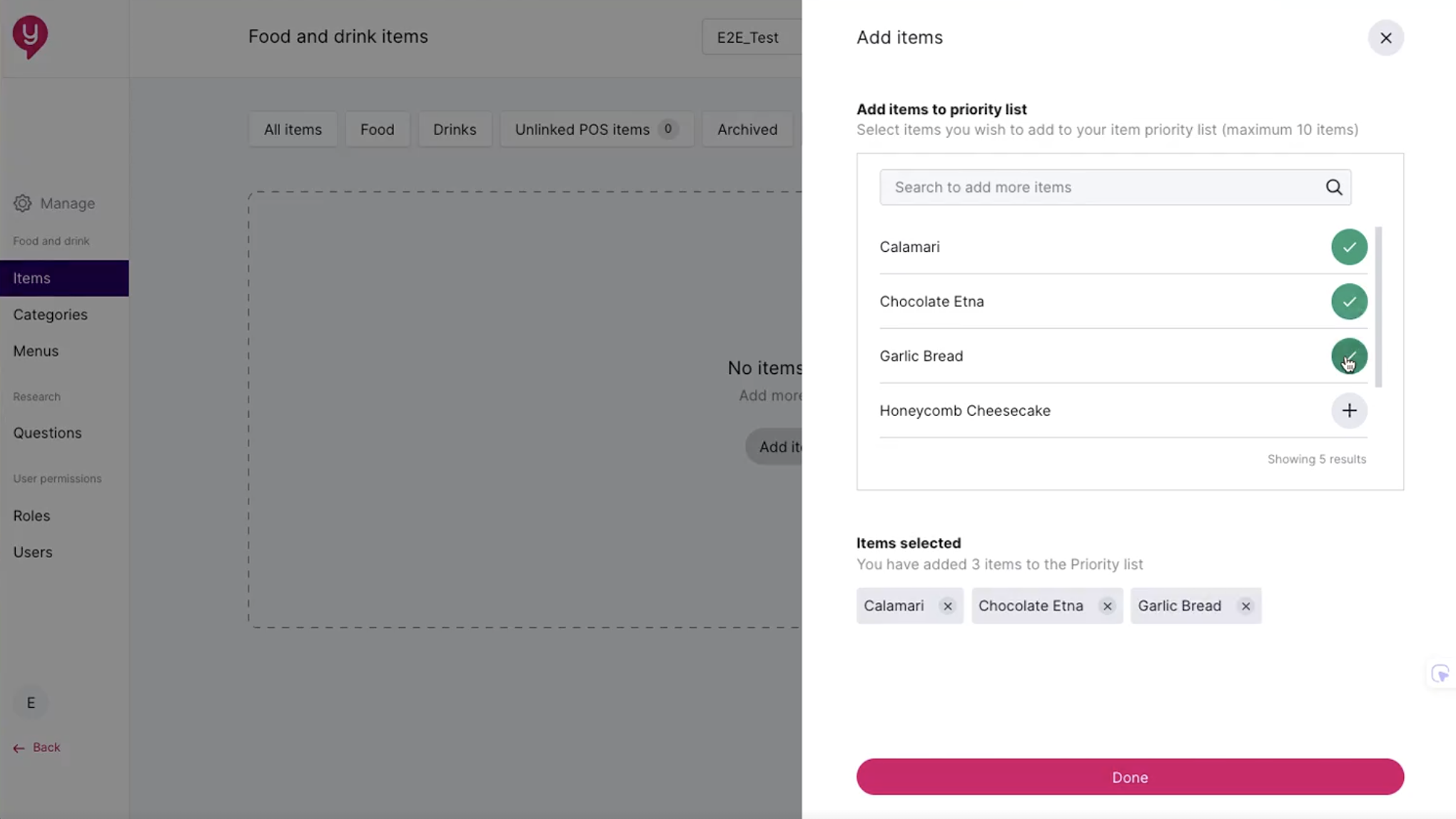 If a guest orders any items from your priority list, these will appear first in their feedback flow.