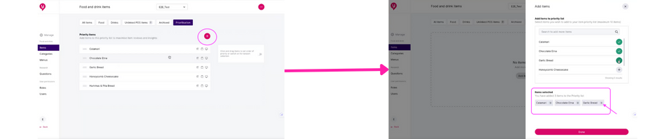 Once inside the menu management page, click on the ‘Items’ tab.Click the ‘Prioritisation’ tab